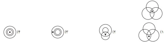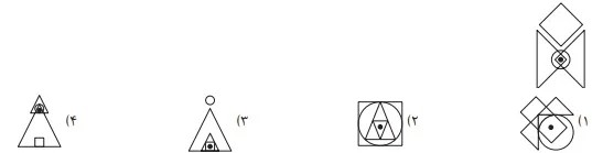 9) با توجه به جایگاه نقطه نسبت به شکلها، گزینه ی همانند تصویر داده شده را انتخاب کنید